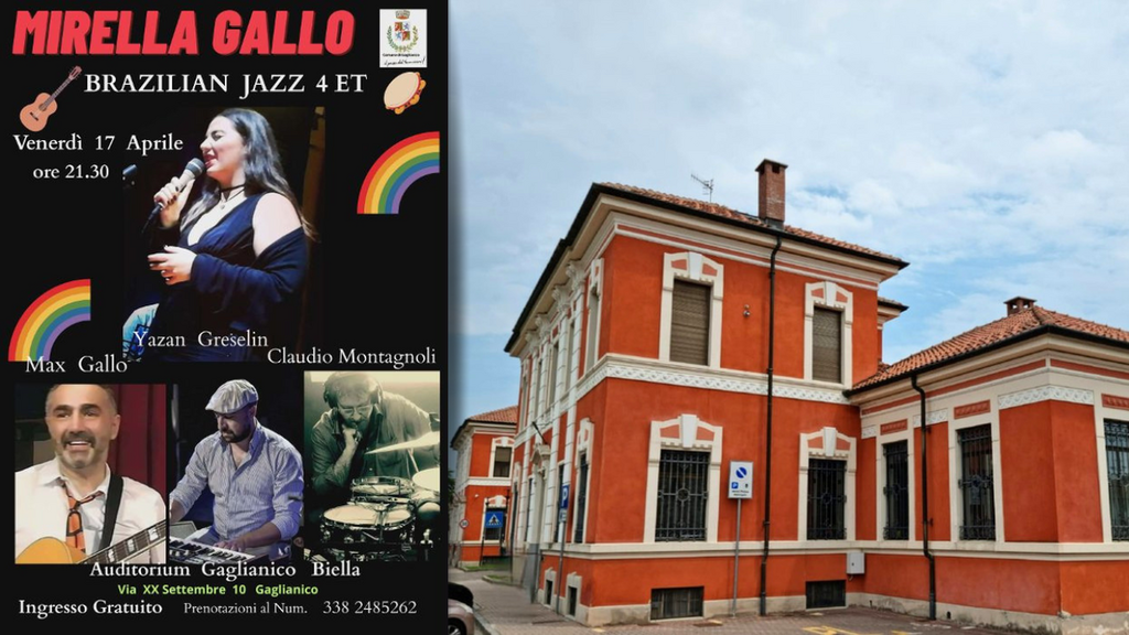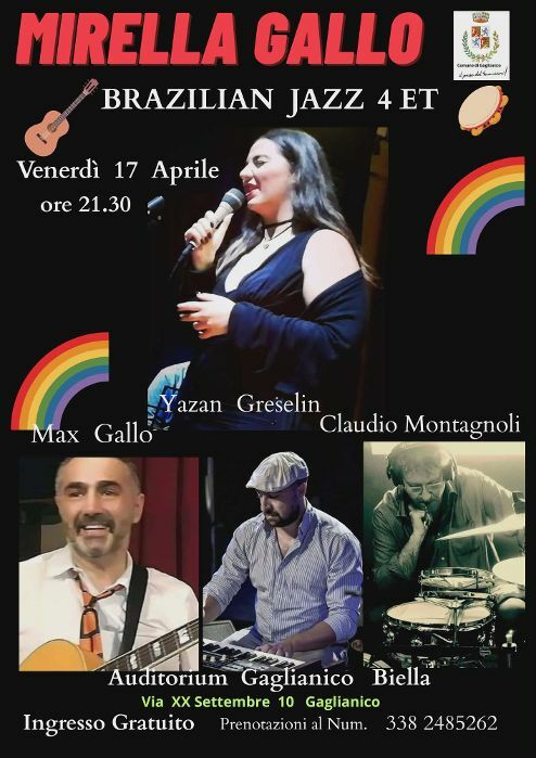 Venerdì 17 aprile, alle ore 21.30, l’Auditorium comunale di Gaglianico ospiterà il concerto “Brazilian Jazz 4 ET - Todo Brasil”, appuntamento dedicato alla musica brasiliana e ai suoi autori più rappresentativi.