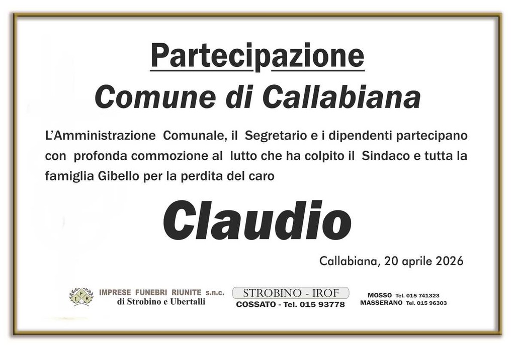 Claudio, Partecipazione Comune di Callabiana