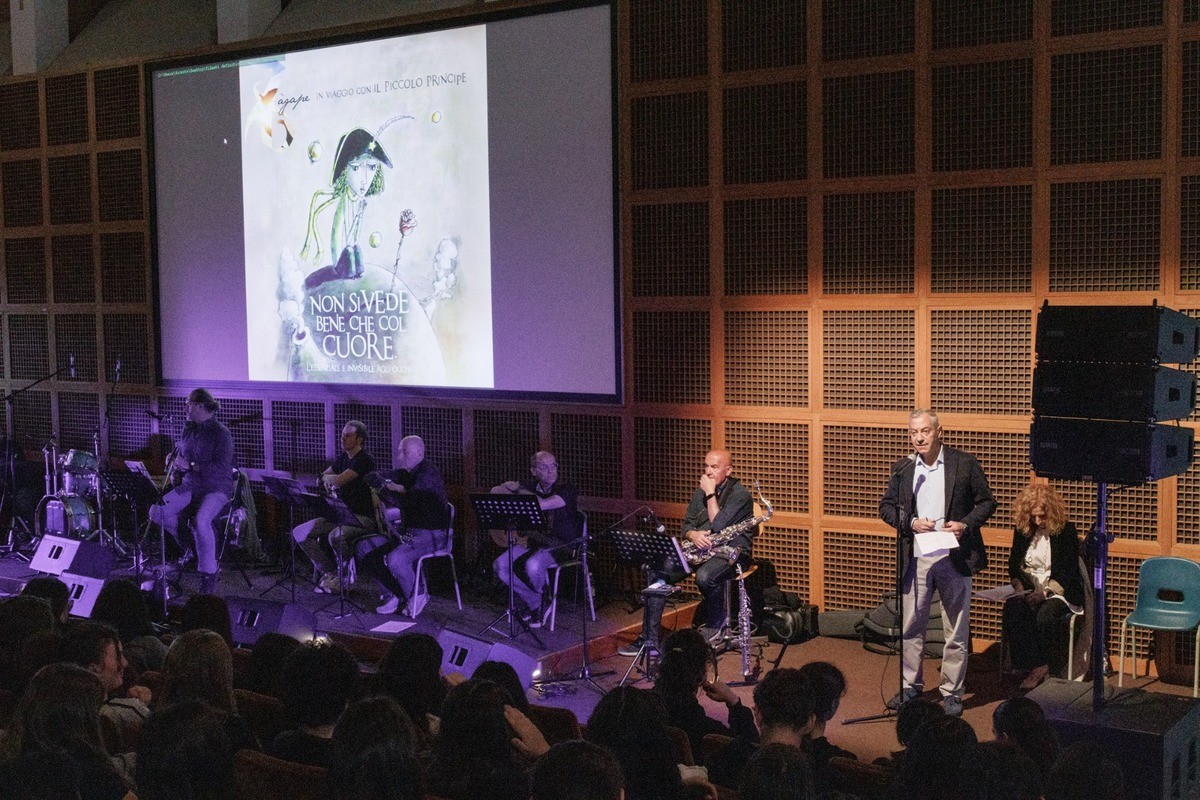 Lo spettacolo, ispirato al capolavoro di Antoine de Saint-Exupéry, ha proposto un percorso artistico che ha unito narrazione, musica dal vivo, danza e immagini, offrendo una rilettura profonda e attuale del celebre racconto. Al centro, i valori universali che attraversano l’opera: l’affettività, la cura delle relazioni, l’amicizia, l’inclusività, l’amore per il creato e la solidarietà, messaggi che sono arrivati con forza ai tanti giovani presenti.