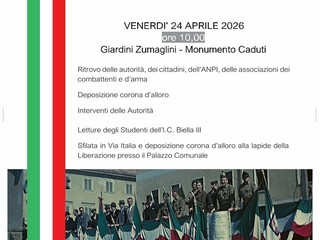L’appuntamento vedrà il ritrovo delle autorità, dei cittadini, dell’ANPI e delle associazioni dei combattenti e d’arma. La mattinata si aprirà con la deposizione della corona d’alloro alla lapide dei Caduti, seguita dagli interventi delle autorità e dalle letture degli studenti dell’Istituto Comprensivo Biella III.
