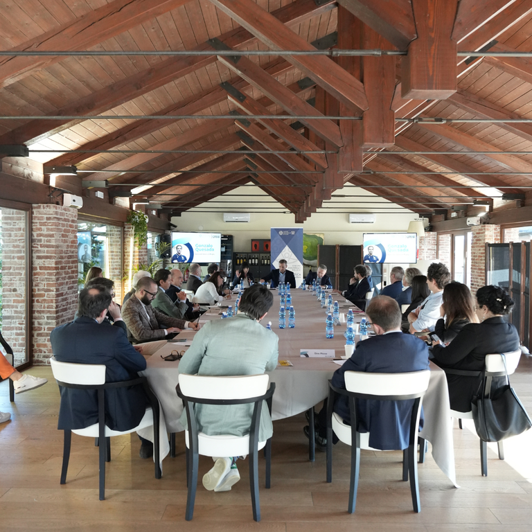 L’incontro è stato moderato da Daria Paoletti, giornalista parlamentare di SkyTg24 e collaboratrice di Confindustria, che ha guidato il dialogo con Quesada e coinvolto gli imprenditori presenti, dando loro la parola per domande e contributi.