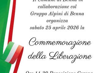 Anche il Comune di Benna si prepara a celebrare il 25 aprile 2026, giornata simbolo della Liberazione italiana, con una cerimonia commemorativa organizzata in collaborazione con il Gruppo Alpini di Benna.