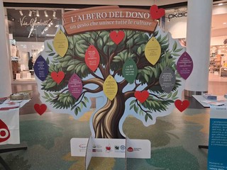 Cuore dell’iniziativa è stato l’“albero del dono”, simbolo potente di inclusione e solidarietà, arricchito da foglie recanti frasi sul tema della donazione in diverse lingue. Un’immagine semplice ma significativa, capace di rappresentare il valore universale del dono e la sua capacità di superare confini culturali, linguistici e sociali.
