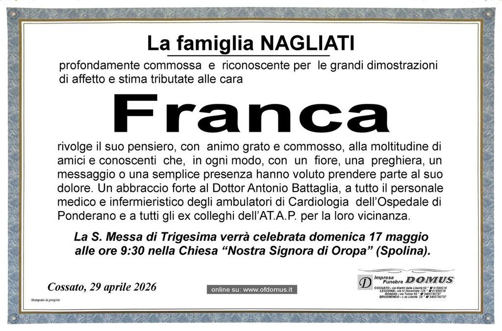 Franca Cesone, ringraziamento