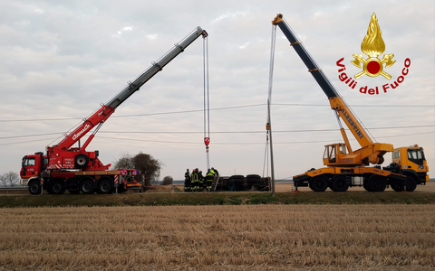Dal Nord Ovest – Tir si ribalta fuori strada, in campo i Vigili del Fuoco con l'autogrù